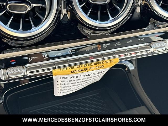 18" Multi-Spoke Alloy Wheels, 4-Wheel Disc Brakes, 8 Speakers, 8-Way Power-Adjustable Front Sport Seats, ABS brakes, Air Conditioning, Alloy wheels, AM/FM radio: SiriusXM, Apple CarPlay®/Android Auto®, Auto High-beam Headlights, Auto-dimming Rear-View mirror, Automatic temperature control, Brake assist, Brushed Aluminum Interior Trim, Bumpers: body-color, Child-Seat-Sensing Airbag, Delay-off headlights, Driver door bin, Driver vanity mirror, Dual front impact airbags, Dual front side impact airbags, Electronic Stability Control, Emergency communication system: eCall Emergency System, Exterior Parking Camera Rear, Four wheel independent suspension, Front anti-roll bar, Front Bucket Seats, Front Center Armrest, Front dual zone A/C, Front reading lights, Fully automatic headlights, Heated door mirrors, Illuminated entry, Knee airbag, Leather steering wheel, Low tire pressure warning, MB-Tex Upholstery, Memory seat, Occupant sensing airbag, Outside temperature display, Overhead airbag, Overhead console, Panic alarm, Passenger door bin, Passenger vanity mirror, Power door mirrors, Power driver seat, Power moonroof, Power passenger seat, Power steering, Power windows, Radio data system, Radio: MBUX Multimedia System, Rain sensing wipers, Rear anti-roll bar, Rear fog lights, Rear reading lights, Rear seat center armrest, Rear window defroster, Remote keyless entry, Security system, SiriusXM Trial Subscription, Speed control, Speed-sensing steering, Split folding rear seat, Steering wheel mounted audio controls, Tachometer, Telescoping steering wheel, Tilt steering wheel, Traction control, Trip computer, Turn signal indicator mirrors, Variably intermittent wipers.